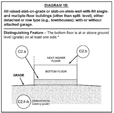 - In Section A, this house is described as Building Diagram Number 1B, meaning it has an elevated slab on grade with no crawlspace.